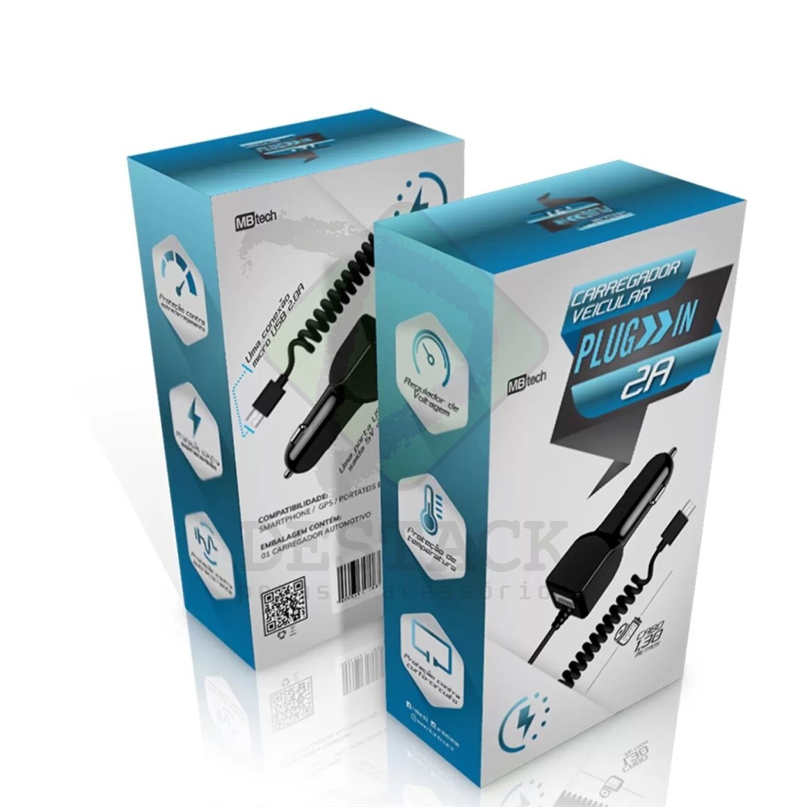CARREGADOR VEICULAR SAÍDA V8 - MB-52089 C/ CABO 1,30M/PORTA USB 2.0A